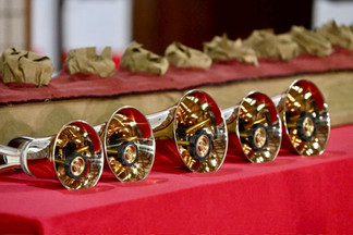 「聖堂的鐘聲是天主號召提醒我們祈禱、工作、聚會與進堂參與彌撒聖祭的聲音。」手鐘音樂源自英國教堂鐘樓音樂,已超過一百年的歷史,原是為了方便練習而製造的樂器,後來因為它獨特的演奏方式,發展成為一種新興的表演藝術。一套手鐘是由多個不同獨立音高的鐘組合而成,猶如放大版的鋼琴鍵盤,演奏時一人一手拿一個鐘,需要由大家彼此默契合作才能完成奏出一首樂曲,所以每一個人都是缺一不可的重要角色喔!手鐘的聲音清脆動人,猶如閃耀的聖光,容易令人聯想起聖誕節,那種感受到光榮、歡樂的氣氛且又展現出聖樂的神聖性與共融性。